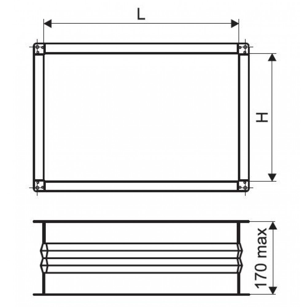 Корпус вставки изготовлен из оцинкованной стали, в середине закреплена тканевая лента, обеспечивающая герметичность канала. Конструкция вставки позволяет крепить её к фланцам вентиляторов с помощью болтов или реечного соединения.