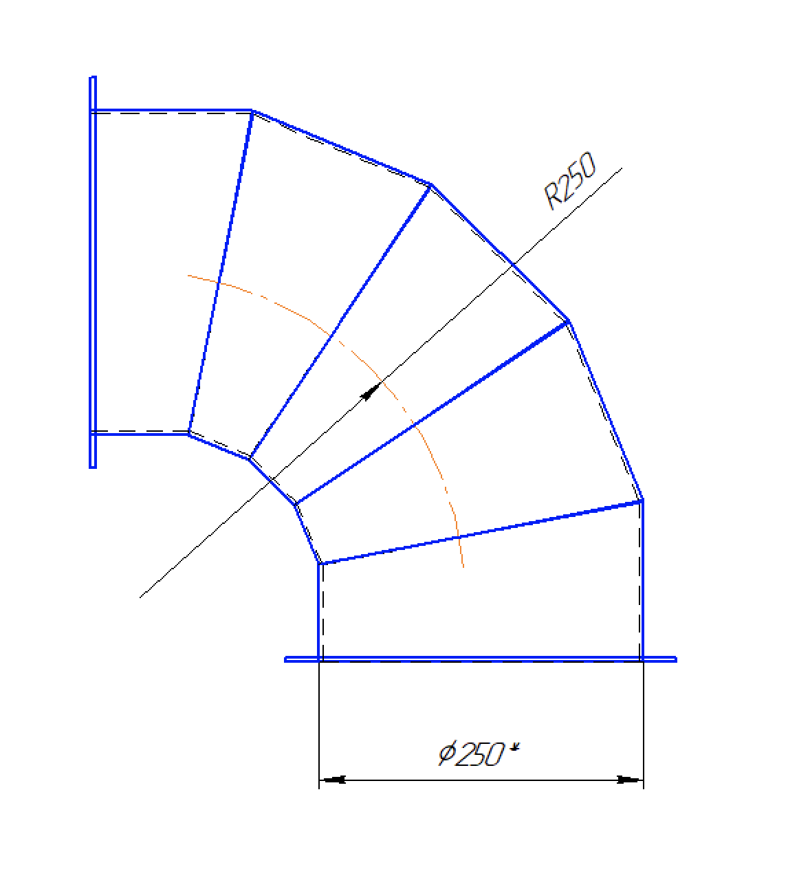 Тип:Круглое сечение (диаметр 250 мм), Колено