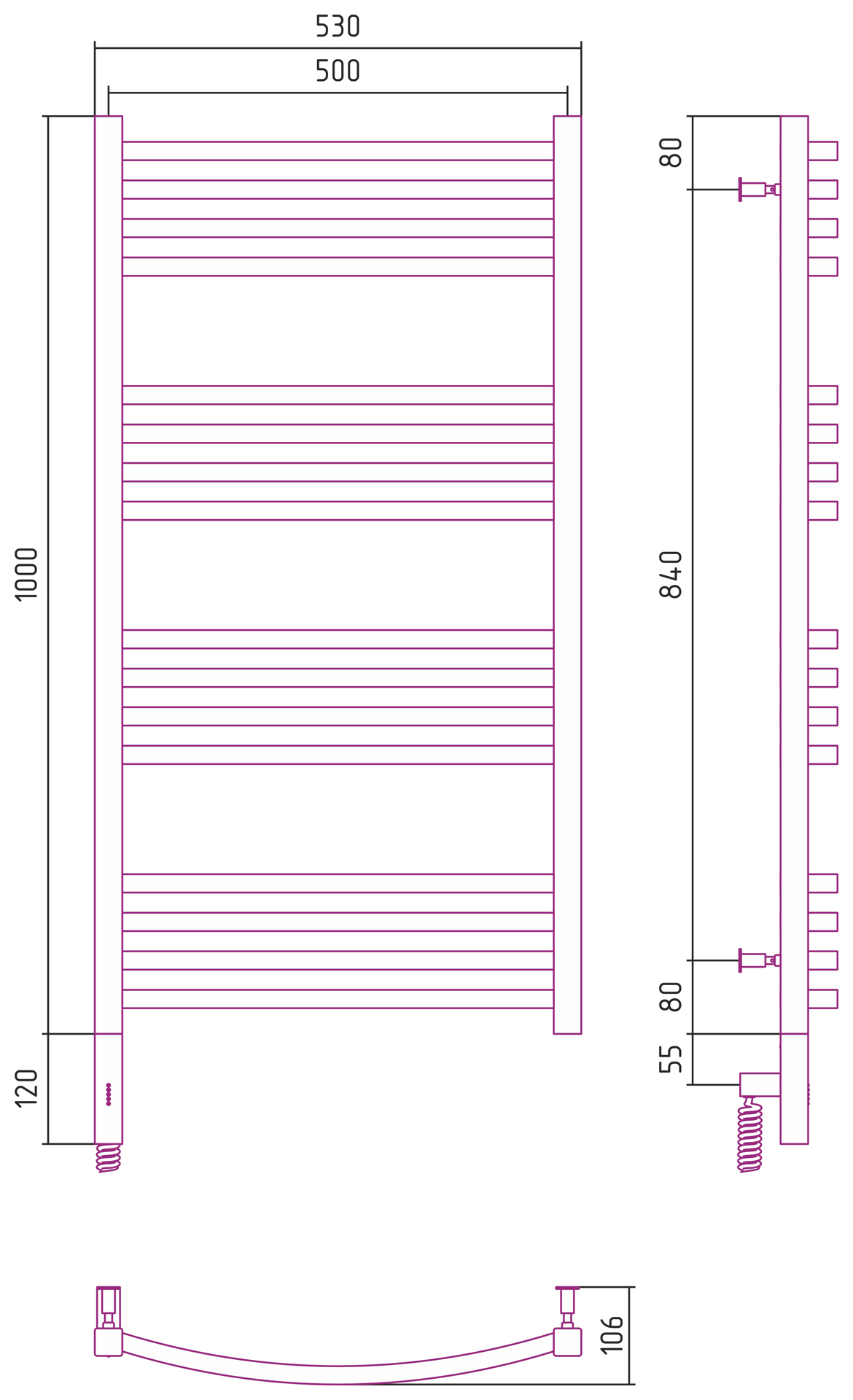 Полотенцесушитель электрический Сунержа Аркус 3.0 1000x500