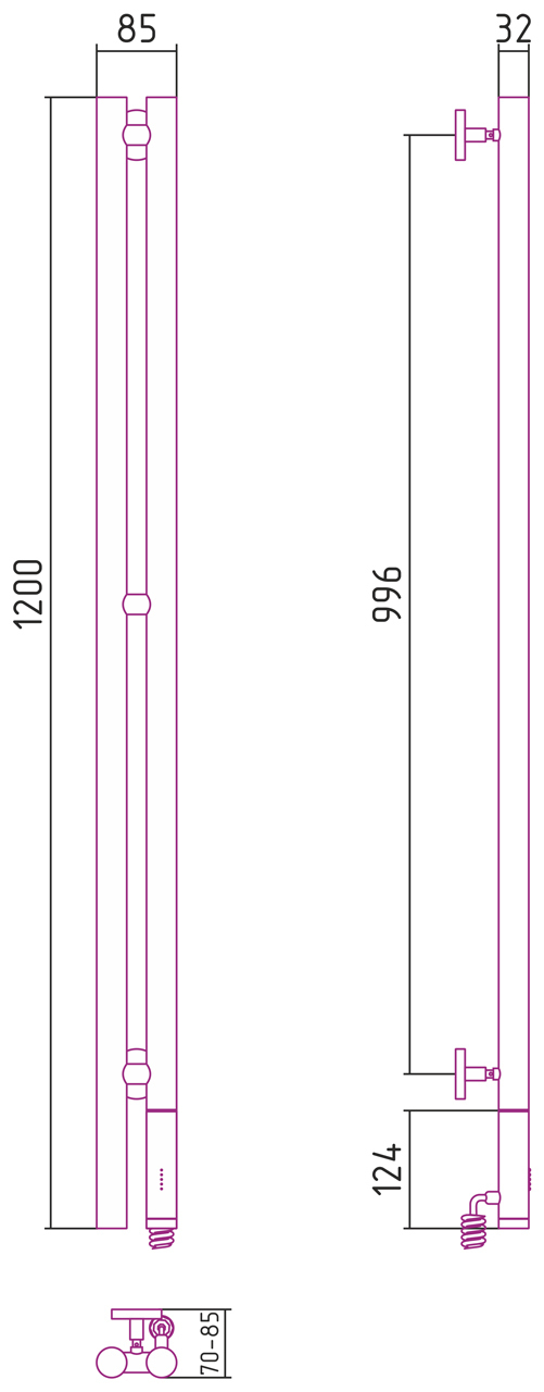 Внешние габариты (высота х ширина х глубина)(мм) : 1200x85x70-85