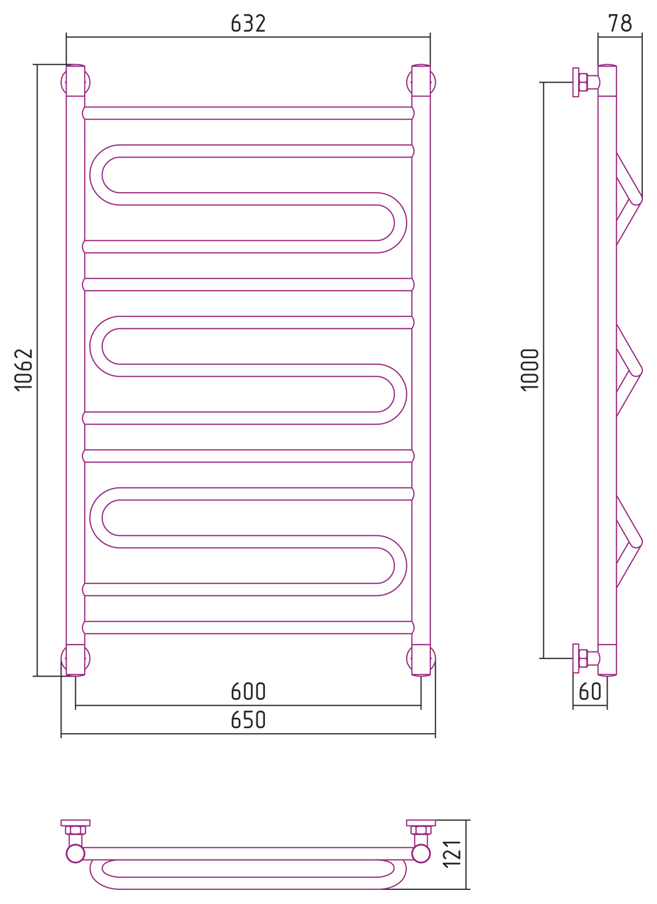 Полотенцесушитель водяной Сунержа Элегия+ 1000x600