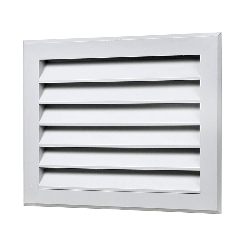 Решетки EAL - алюминиевые решетки для наружной установки, покрашены методом порошкового напыления в белый цвет (RAL 9016). Живое сечение составляет 41% от площади решетки. Жалюзи расположены под углом 45 градусов, что исключает попадание воды или снега через решетку.