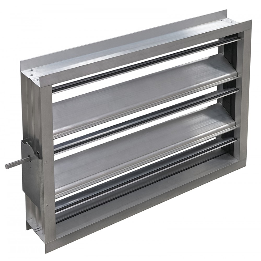 При ручном регулировании, предусмотрена возможность фиксации заслонки в необходимом положении. Подпружиненный ручной привод без гайки-барашка обеспечивает фиксированные положения лопаток каждые 9˚ 30΄.